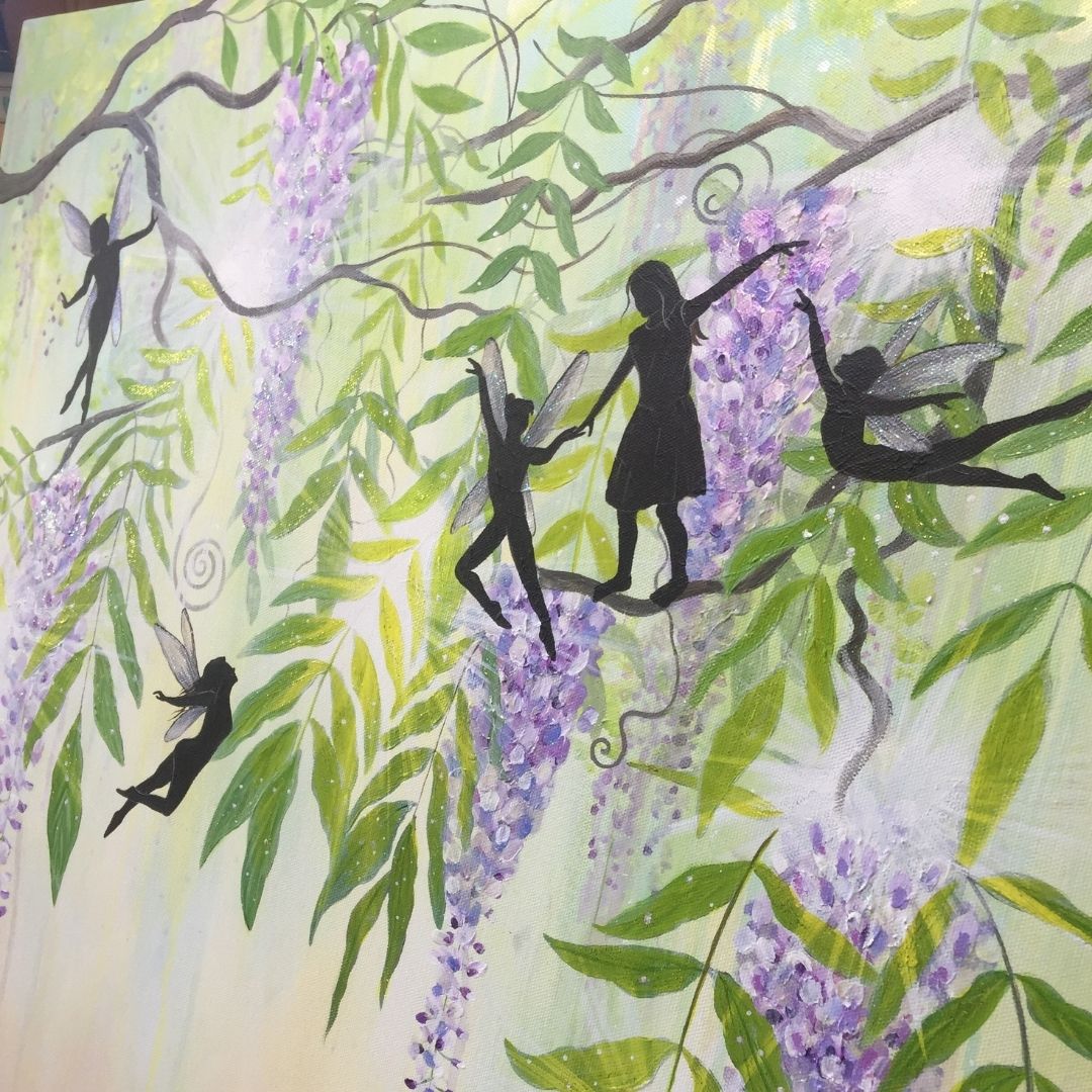 Play with Fairies is Michelle's largest painting she is currently releasing and will really make a whimsical statement piece to any room you choose to hang this in.